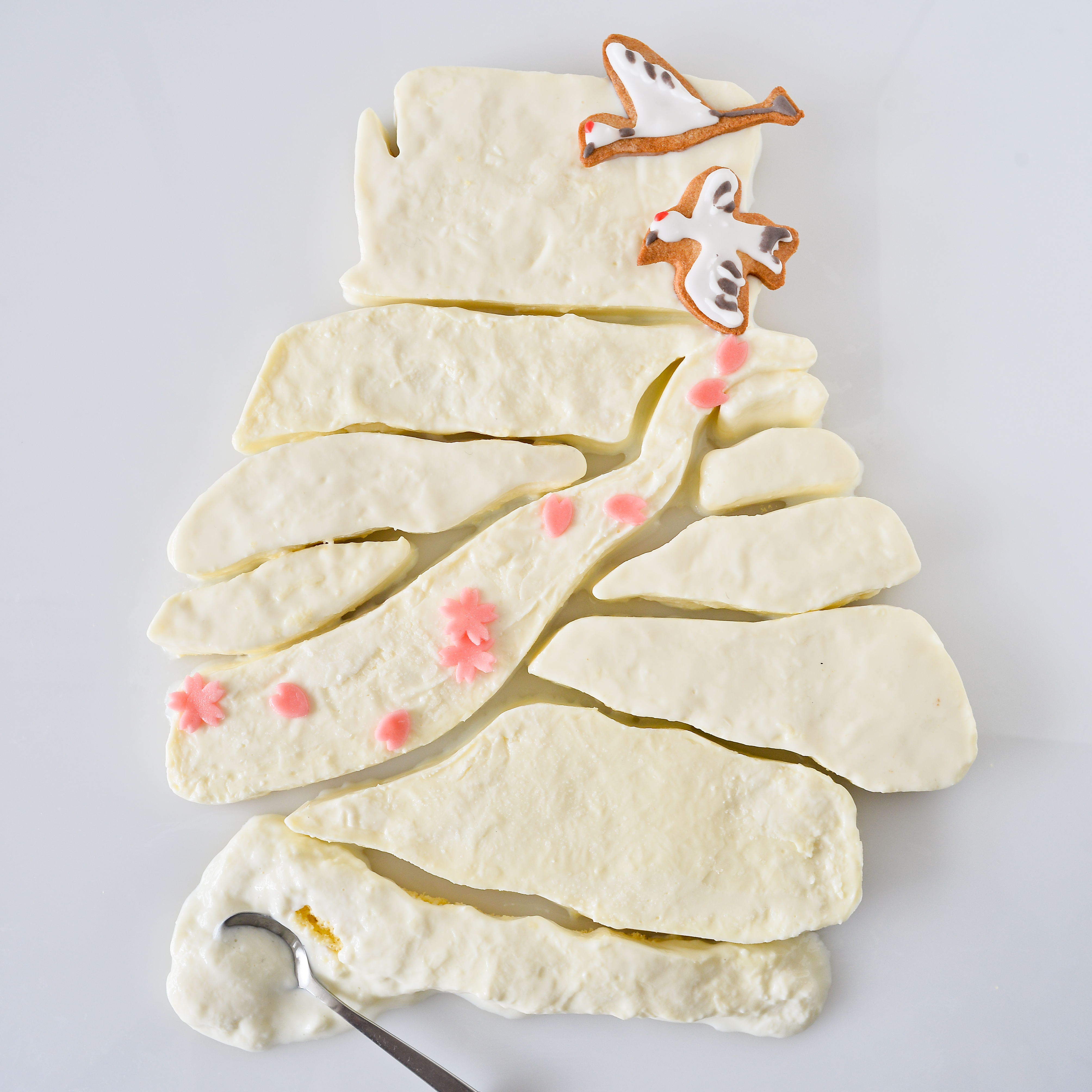 季刊紙の表紙は地域の特産品を使いロゴマークでデザインしていますが、鶴居村では「いつかやってみたかった」アイスクリームに挑戦しました。私たちのオフィスである世田谷ものづくり学校の一室は元々は理科室。おあつらえ向きの実験向きの空間ではあります。当日は朝からエアコンをマックスに、部屋を冷やして臨んだのですが「私はアイスクリームなので」と言わん限りに、冷凍庫から外の世界に放たれたアイスはみるみる溶けていきます。アクセントのタンチョウのクッキーを数種類用意してもらっていたのでですが、組み合わせを試してる間にもアイスクリームのエッジは溶けていきました。