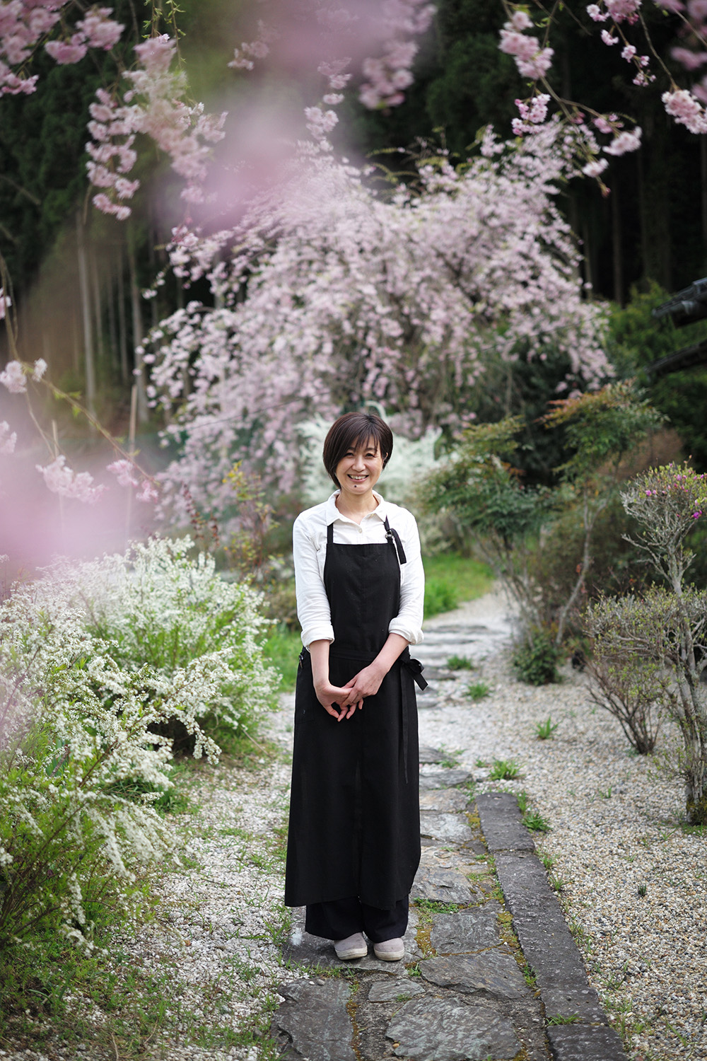 「私が生まれた年に、材木業を営んでいた祖父が建てた家です。桜も同じ時期、母が植えたものなので、家と同様、私と同じ年ですね」と東さん。見事に成長したしだれ桜は、このお店の守り神のように訪問客を歓迎する。
