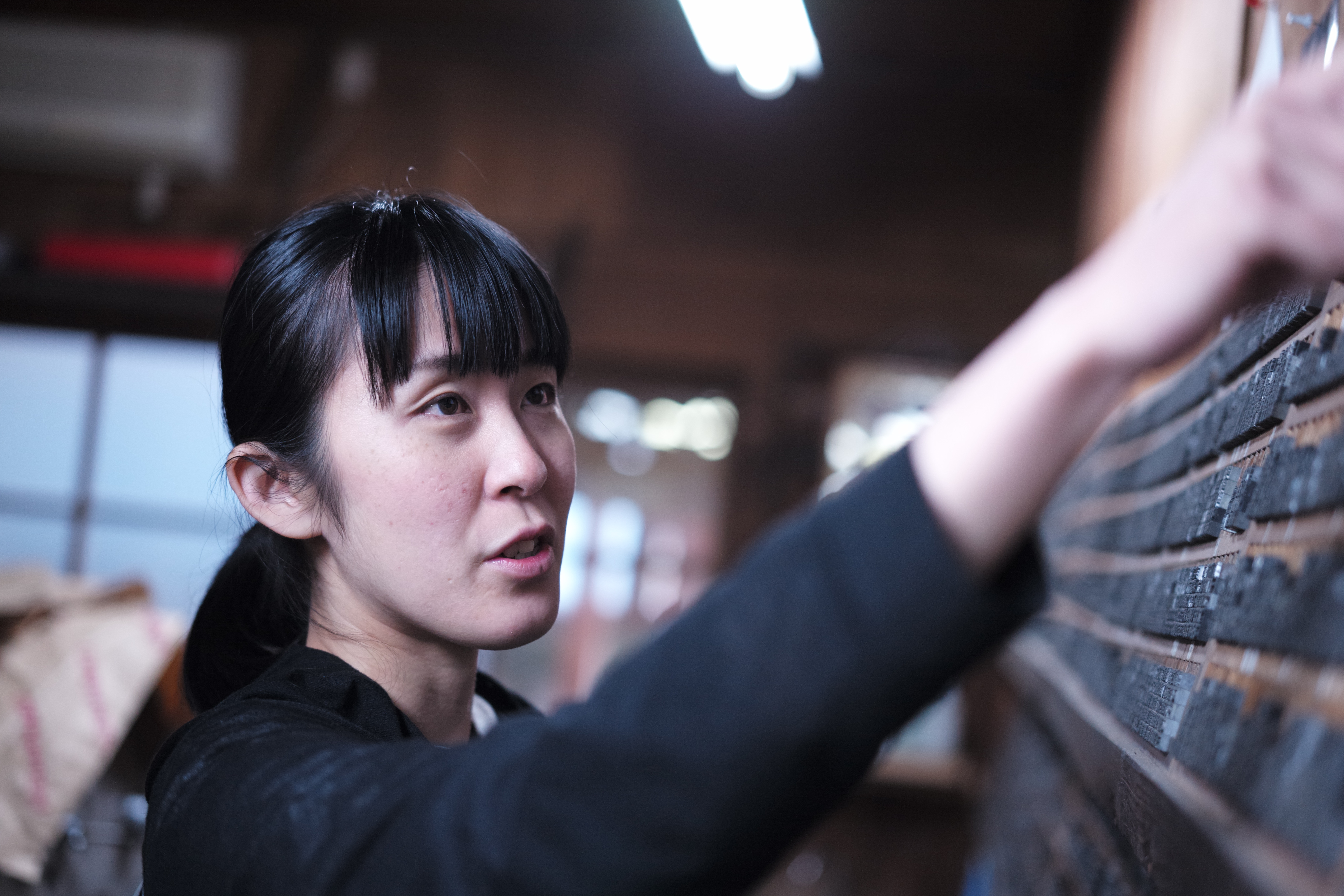 築200年の味わいあふれる古民家。ここが、桃子さんの自宅兼100年の歴史を持つ印刷所「晋弘舎」だ。一歩足を踏み入れると、壁一面にぎっしりと並んだ、重く、鈍い輝きを放つ鉛に圧倒される。近づいてみると、漢字の部首ごと、そして書体の大きさごとに一文字ずつ陳列されている。活版印刷に欠かせない「活字」だ。
