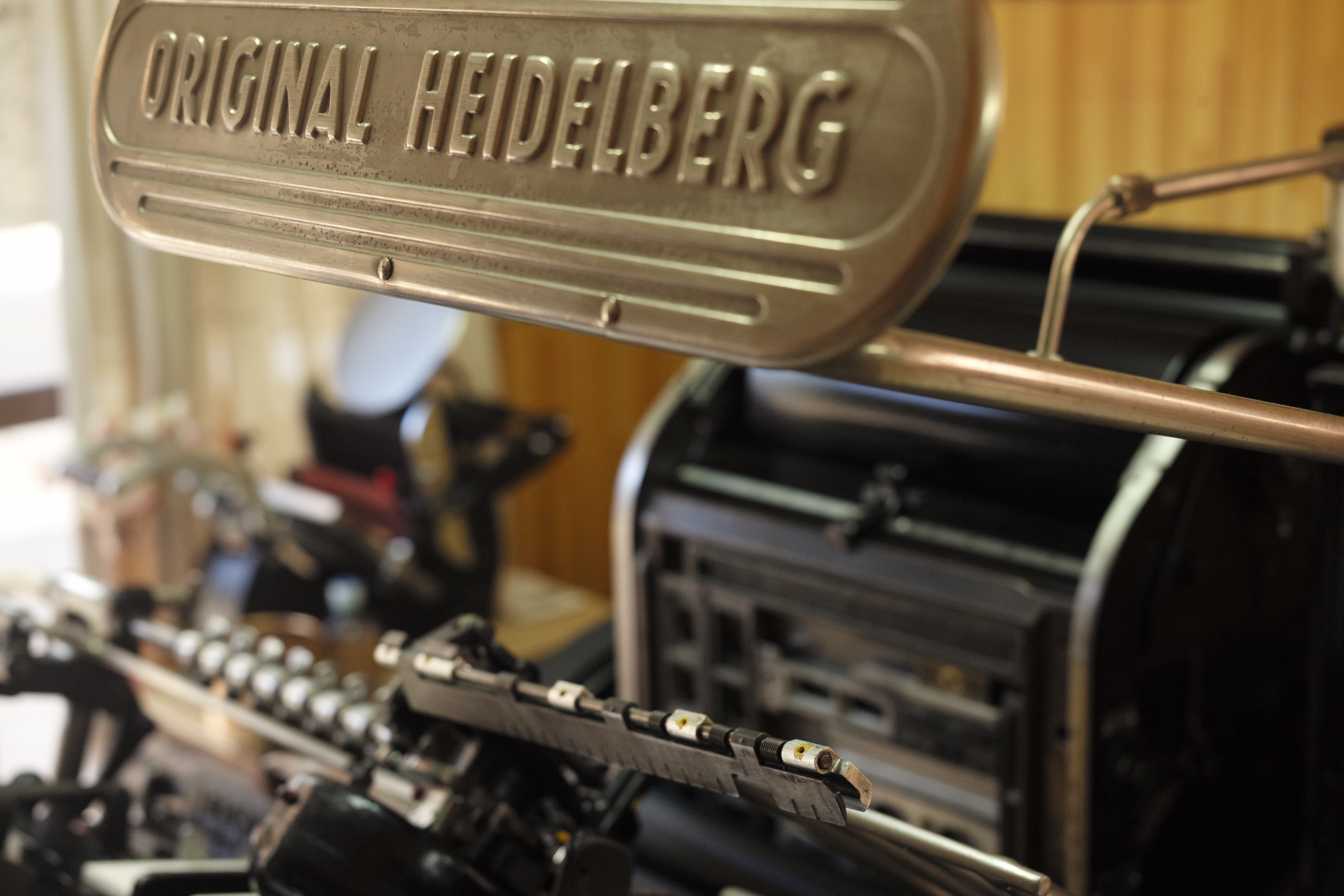 今年、作業場内に自身の工房をオープンし、念願だったドイツのハイデルベルグ社製の印刷機を入れた。この印刷機の製造は終わっておりレストア機だ。何台もの中古の機械から使える部品を組み合わせ、1台のハイデルベルグを組み立てていく。福岡の会社から購入した。