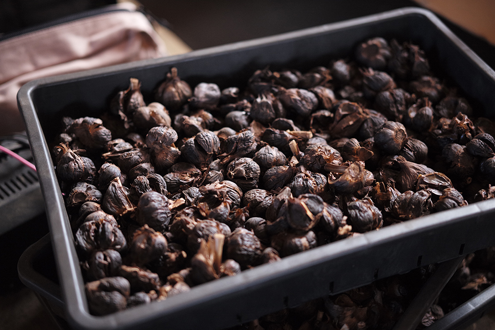 もともと、害虫が少ない土地柄で、農薬を使わずとも美味しい作物が育っていた。ある日、新聞を読んで自分のやっていることは有機農法だと気づき、JAS有機を取得したのだという。北海道で有機アスパラの第一人者だ。その他にも、にんにくは作り続けて40年。黒にんにく加工も行う。