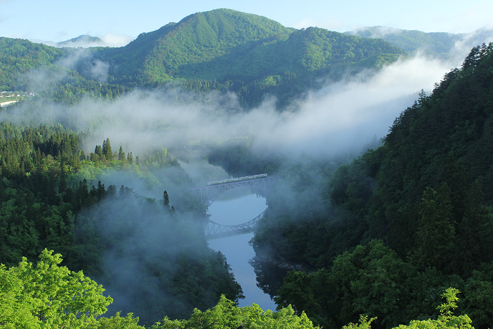 磐越自動車道を郡山から西へ。市街地を抜けたら、のどかな田園地帯から会津磐梯山を望む猪苗代の盆地、そして山深き奥会津へと、トンネルを一つくぐるごとに車窓からの景色が移り変わっていく。いつまでも見飽きることのない、自然と地形とが織りなす多様な美しさを味わうことは、この旅が与えてくれる最初の喜びだ。三島町を訪ねるとき、私たちは改めてこの国の広さを、そして会津の奥深さを知ることになる。
