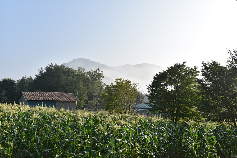 山ふところに抱かれた木曽町は、文字通り、山が近い。8月。山に重なる見事な入道雲も、ざーーっと音を立てる夕立で、山が丸ごとシャワーを浴びる壮観な光景も、ここでは間近に見ることができる。夏の火照った空気を冷ましてくれる夕立は、山に浸み込んで、磨かれ、蓄えられるのだろう。生まれてくる清冽な水の恵みのイメージが、容易に湧いてくる。山が近いと、自然のメカニズムの偉大さとも隣り合わせだ。